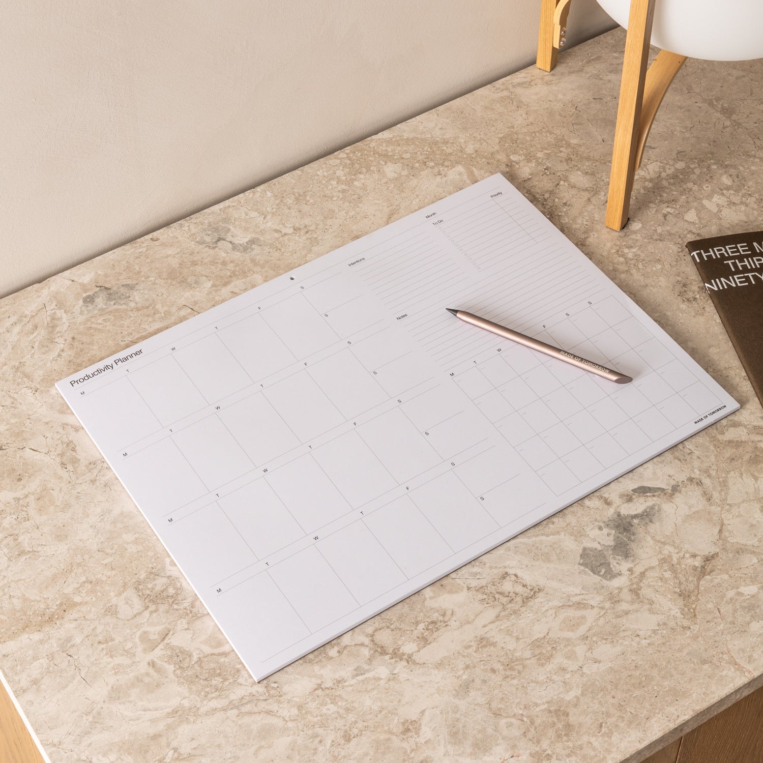 Our undated planner features three blank months of flexible planning—monthly spreads, goal setting, budgeting, lists, and a drawing section. Designed for planning in smaller chunks, it’s easy to pick up anytime without the bulk of a full-year diary.