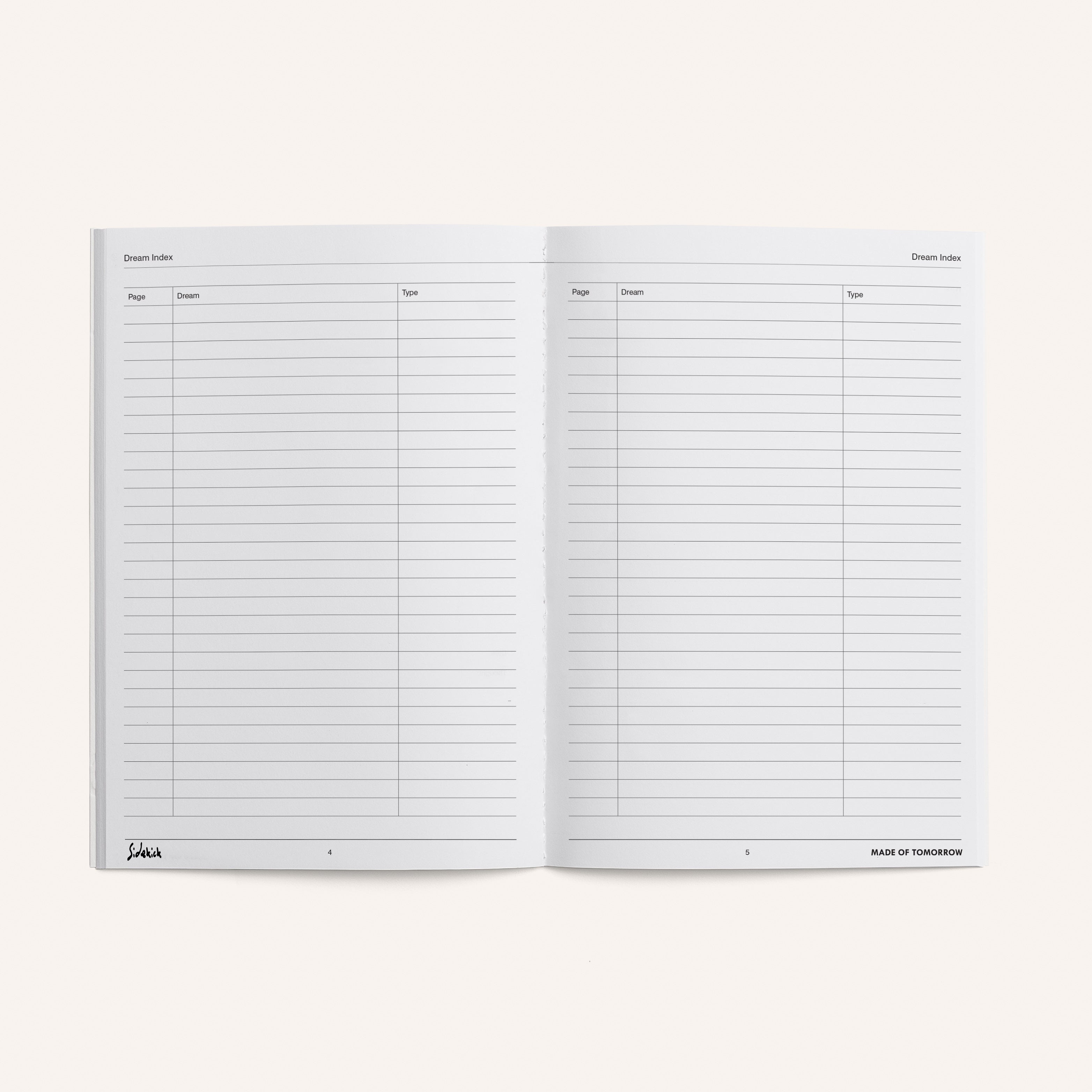 The Dream Index pages help you stay organised, log each dream by page, title, and type for easy reference and deeper pattern tracking over time.